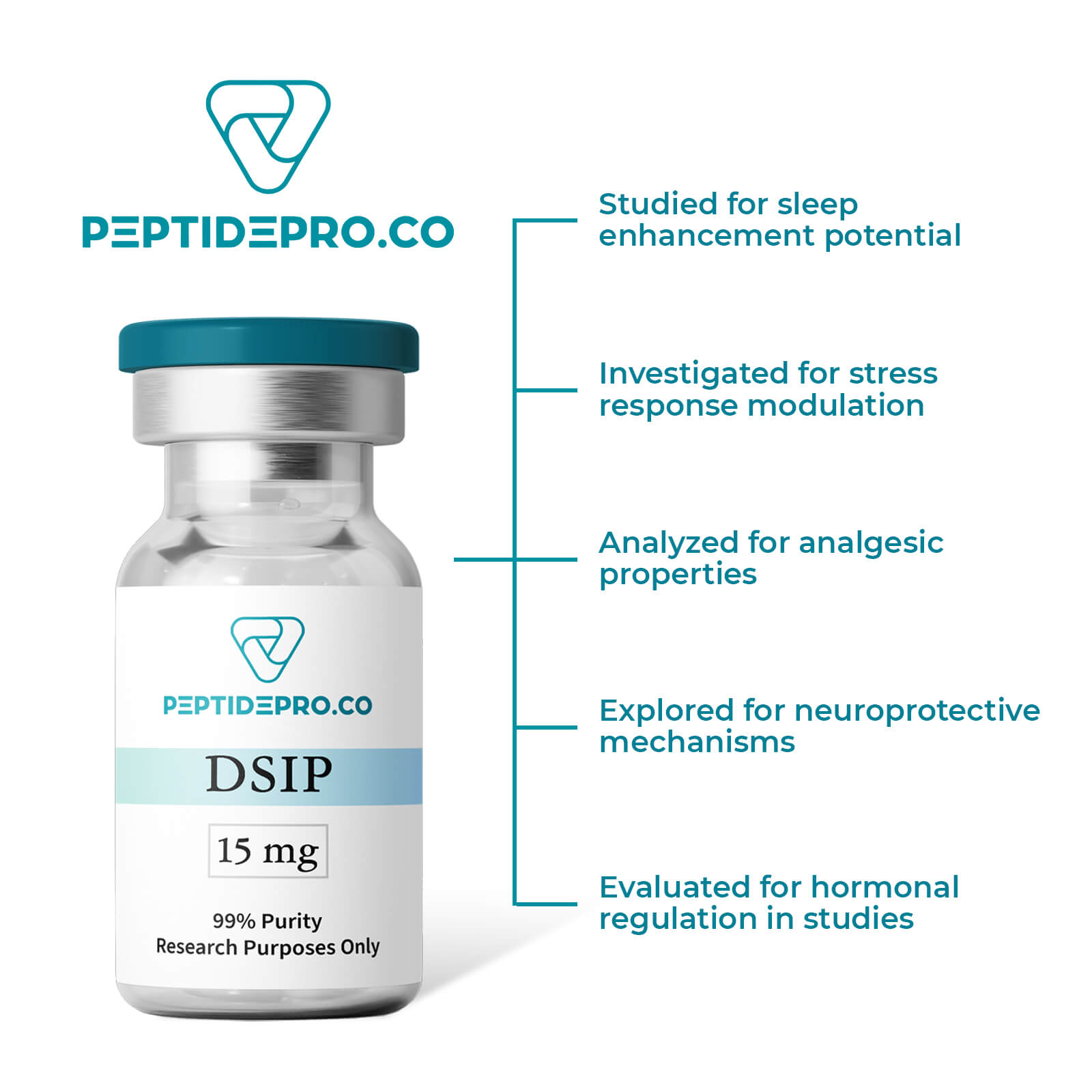 DSIP is a neuropeptide that plays a role in regulating delta-wave sleep and stress-related processes in research settings. It is used in experimental studies exploring sleep cycles, physiological homeostasis, and recovery mechanisms.